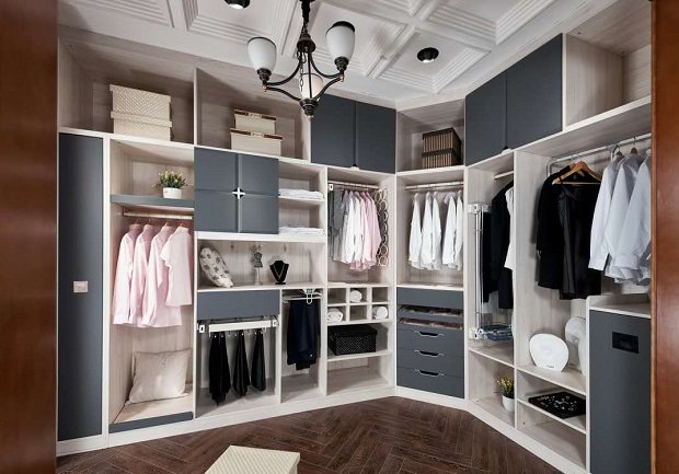 根据面积选择形式:根据空间大小和形状选择衣帽间的形式,其中衣帽间的柜体部分又分为板式和金属框架两种形式。市面上比较流行金属框架式的衣帽间,该种形式能节约空间又比较符合简洁、现代的装修风格;板式衣帽间则比较稳重,相对也需要比较大的空间。