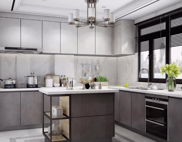 金属质感型:精细拉丝打磨,表面形成致密保护层的金属板或仿金属板。这种材质具有极好的耐磨、耐高温、抗腐蚀性,且日常维护简单,纹理细腻,极易清理,寿命长。随着金属流行风的盛行,这种高档金属质感门板日益成为了新宠,其中铝饰面凸凹面板,是目前最高档的一种门板。但其价格昂贵,适合追求与世界流行同步的超高档装修。 烤漆型:烤漆板基材为密度板,表面经过六次喷烤进口漆(三底、二面、一光)高温烤制而成。用于橱柜的"烤漆"仅说明了一种工艺,即喷漆后经过进烘房加温干燥的油漆处理基材门板。烤漆板的特点是色泽鲜艳易于造型,具有很强的视觉冲击力,非常美观时尚且防水性能极佳,抗污能力强,易清理。缺点是工艺水平要求高,废品率高,所以价格居高不下;使用时也要精心呵护,怕磕碰和划痕,一旦出现损坏就很难修补,要整体更换;油烟较多的厨房中易出现色差。 防火板:它的颜色比较鲜艳,封边形式多样,具有耐磨、耐高温、耐剐、抗渗透、容易清洁、防潮、不褪色、触感细腻、价格实惠等优点。防火板门板基材为刨花板、防潮板或密度板,表面饰以防火板贴面。国产防火门板价格较低,韩国板材和德国板材的成本则要增加25%和50%左右。 防火板符合橱柜"美观实用"相结合的发展趋势,因此在市场上长盛不衰。其缺点是门板为平板,无法创造凹凸、金属等立体效果,时尚感稍差。 防火板是采用硅质材料或钙质材料为主要原料,与一定比例的纤维材料、轻质骨料、黏合剂和化学添加剂混合,经蒸压技术制成的装饰板材。 包复框型:包复框型门板门框基材为中密度板,外包PVC,门芯板为德国爱家装饰板或防火板等双饰板,由橱柜公司自行再加工拼接;它的优点是色彩丰富,边框与双饰板任意搭配,充分体现个性时尚,日常维护清理方便、简洁,而且边框加芯板结构稳定、不变形且无需封边。此门板是现代人的理想选择。 水晶:环保而且造型立体。该材质丰富了橱柜的设计,起到了积极的作用,深受一部分人的喜爱。 镜面树脂板:镜面树脂板当前在橱柜市场上用的还是比较多,它的属性跟烤漆门板差不多,也就是时尚、色彩丰富、防水性好。但是不耐磨,容易剐花,而且耐高温性也不是很好。所以对色彩要求高、追求时尚的消费者可以选择镜面树脂板的橱柜,但因为容易剐花,所以使用时应注意保养。 防水型:随着人们对橱柜的使用普及和现代人对生活的高品质要求,很多客户不再对低价格产品感兴趣,因为厨房做饭洗菜洗碗都要用到水,以前推出的很多产品种类一沾到水就会发生膨胀变形或者霉变,人们开始要求防水性高的产品。当前很多橱柜厂家推出了防水型橱柜门板:防水模压板、防水烤漆板、防水晶刚板、防水至尊晶刚门板等,其门板在水中浸泡了很久,门板丝毫没有变形膨胀的现象。全防水橱柜概念已经是现代人的高标准选择。 亚克力型:亚克力优良的耐候性,抗老化性能好,加工性能良好,优异的综合性能 ,亚克力板色彩丰富,并具有极其无毒,即使与人长期接触也无害,还有燃烧时产生的气体不产生有毒气体。 钢化玻璃型:无板材设计门板,将简约发挥到极致,坚固耐用,玻璃材质,光泽度高,表面平滑,易清洁,简约大气。 石英石台面 石英石台面是利用碎玻璃和石英砂制成。石英石的优点是耐磨不怕刮划,耐热好可大面积铺地贴墙,做各种厨卫台面,拼接缝不明显(仔细观察可见-验收标准,经久耐用是厨房橱柜不错的选择)。