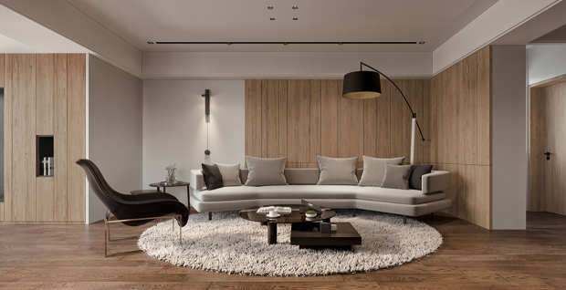 未经修饰的原生态木材,是一种极具生命力的材质。它质感天然、肌理丰富,色泽比较淡雅、舒缓,散发着一种质朴无华的自然韵味,所以一旦在家里大面积地铺展开来,就仿佛让人置身于自然之中,每次回到家都是一次心灵的放松。